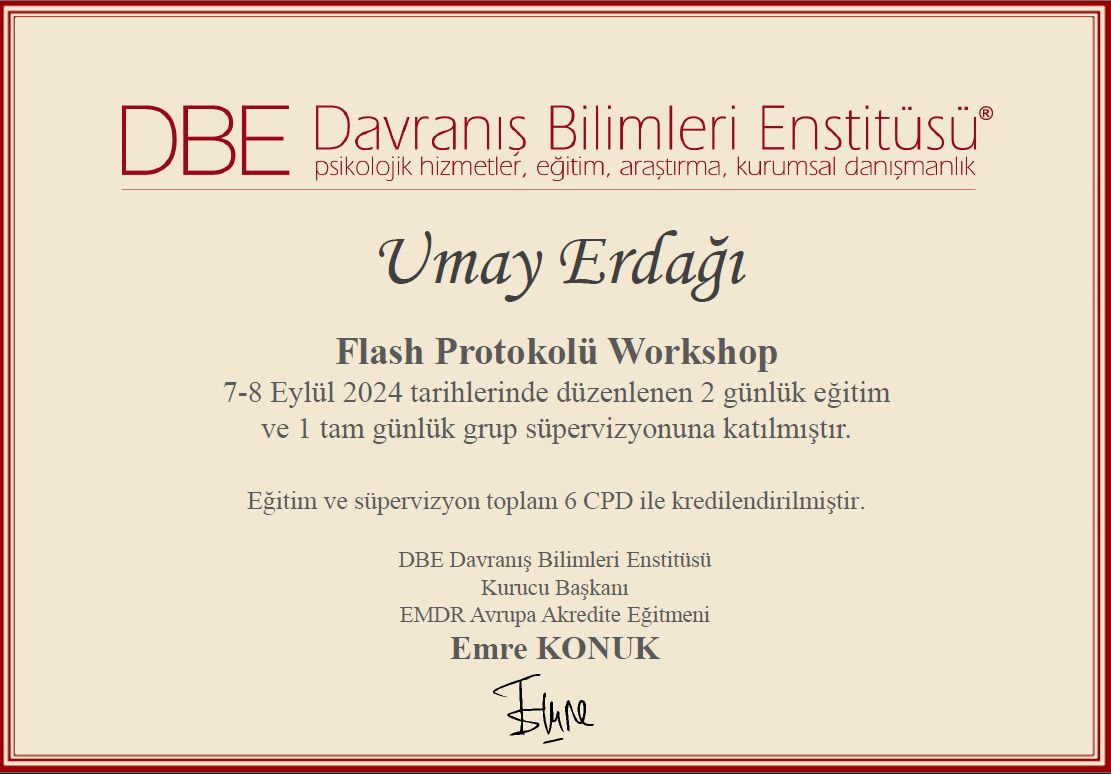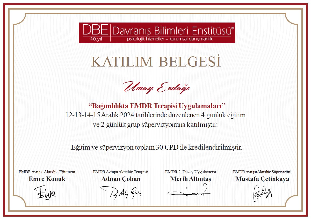 Umay Bey ile zor bir süreçten geçtiğim bir dönemde görüşmelerimiz başladı. İş hayatında ve ailevi anlamda iletişim problemleri yaşıyordum ve depresiftim. Bu süreçte düzenli olarak seanslarımıza devam ettik. EMDR ile geçmişten gelen düğümlerimin hepsi teker teker çözüldü. Kendimi tanımaya ve davranışlarımın kaynağını anlamaya başladım. Artık duygularımı daha iyi yönetebiliyorum ve güçlenmiş hissediyorum. Umay Bey’e ilgisi, samimiyeti ve süreci aktif bir şekilde yönetimi için sonsuz teşekkürler. Kendisi ile tanışmayı bir şans olarak görüyorum.