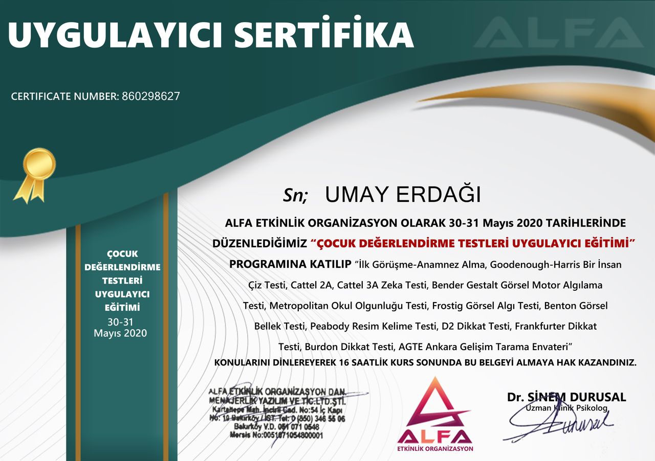 Psk. Umay Erdağı'na sosyal medya aracılığı ile ulaştım. 10 yaşındaki oğlumun dikkatini uzun süre sürdüremiyor olması, çalışkan bir çocuk olmasıyla beraber başarı oranını daha yukarı çekebilecek olmasına olan inancım, kendini ifade etme, kendini geliştirmesi adına uzman bir kişiden de destek almanın doğru olacağına olan inancımdan ötürü başvurdum. Umay bey beni çok kibar karşıladı. Uzun süren bir telefon görüşmesi yapmış olmamıza karşın her söylediğimi ayrı ayrı dikkate alarak, her soruma incelikle yaklaşarak beni görüşmeye davet etti. Eşimle beraber katıldığımız bu görüşmede bize Getap programı ve Moxo dikkat testinin detaylarını anlattı. Ortak kanaatimiz bizim bu arayışımıza çözüm olacağıydı . Süreç içerisinde beklediğimizden fazlasını aldık. Çünkü hem dikkatini sürdürme ile ilgili yeni teknikler geliştirmiş, bunu hayatın her aşamasına uygulamayı öğrenmiş oldu hem de psikologu ile güzel bir bağ kurdu. Biz yetişkinler için bile bazen sorunlarımızı bir yabancıya uzman oldugunu bilsek dahi anlatmak zorken çocuklar için bunun imkansıza yakın oldugunu düşünenlerdenim. Bu program sayesinde oğlum kurduğu bu bağ ile iç dünyasını da uzmanımıza açabilecek güveni elde etti. Umay Bey genç ve ışık saçan biri. Sizi dinlerken anladığını ve size çözüm bulmak için sizinle ortak oldugunu size hissettiriyor. Daha önce kendi özel hayatımda birkaç defa psikolojik destek aldım. Dinlenildim ama hiçbir zaman anlaşıldığıma ve hislerimin böylesine normal karşılandığına tanık olmamıştım. Kendisini evlilik terapisi almak isteyen, kişisel destek almak isteyen, gençlerle ilgili dikkat geliştirme desteği almak isteyen kısaca "Ben bu sorunu nasıl çözerim" diye düşünüp çözüm bulamayan herkese tavsiye ediyorum. Bundan sonra da gerek çocuklarım, gerek kendi iç dünyamda kayboluşlarımda yolumu bulmak için her zaman kapısını çalacağız.Sonsuz teşekkür ederiz.